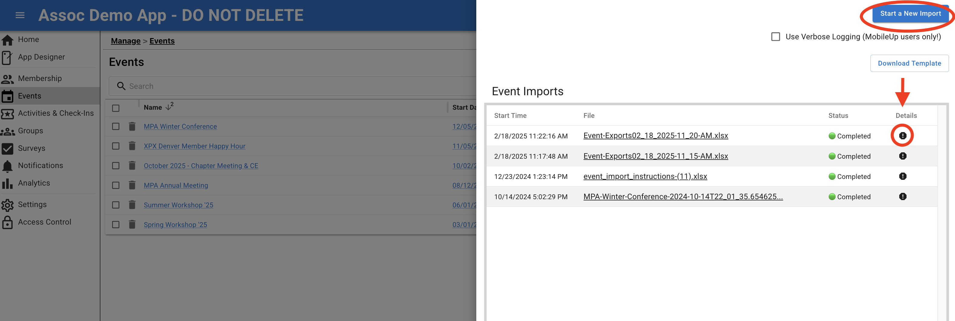 - Do not use the 'Import Template' file under the 'Import Events' button if the event is already created.
